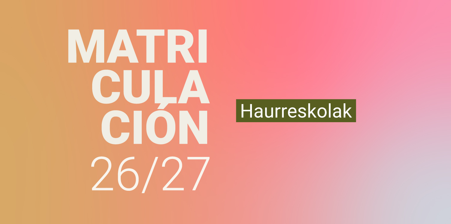 Ya está abierto el plazo de inscripción para haurreskolak. Los padres, madres o tutores y tutoras de los nacidos en 2025 y 2026 podéis solicitar plaza en cualquiera de los centros del Consorcio Haurreskolak del 13 de abril al 4 de mayo, ambos incluidos.